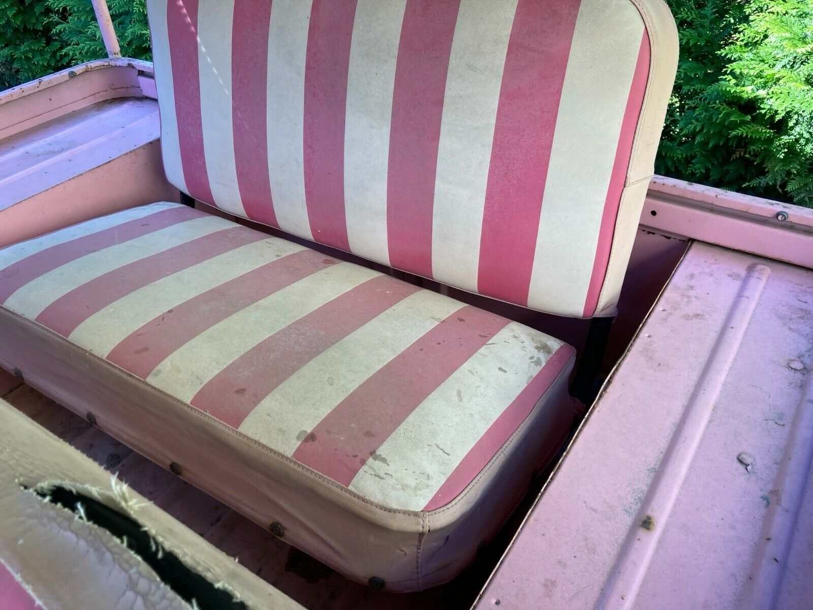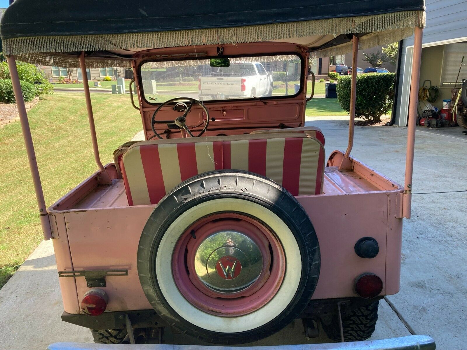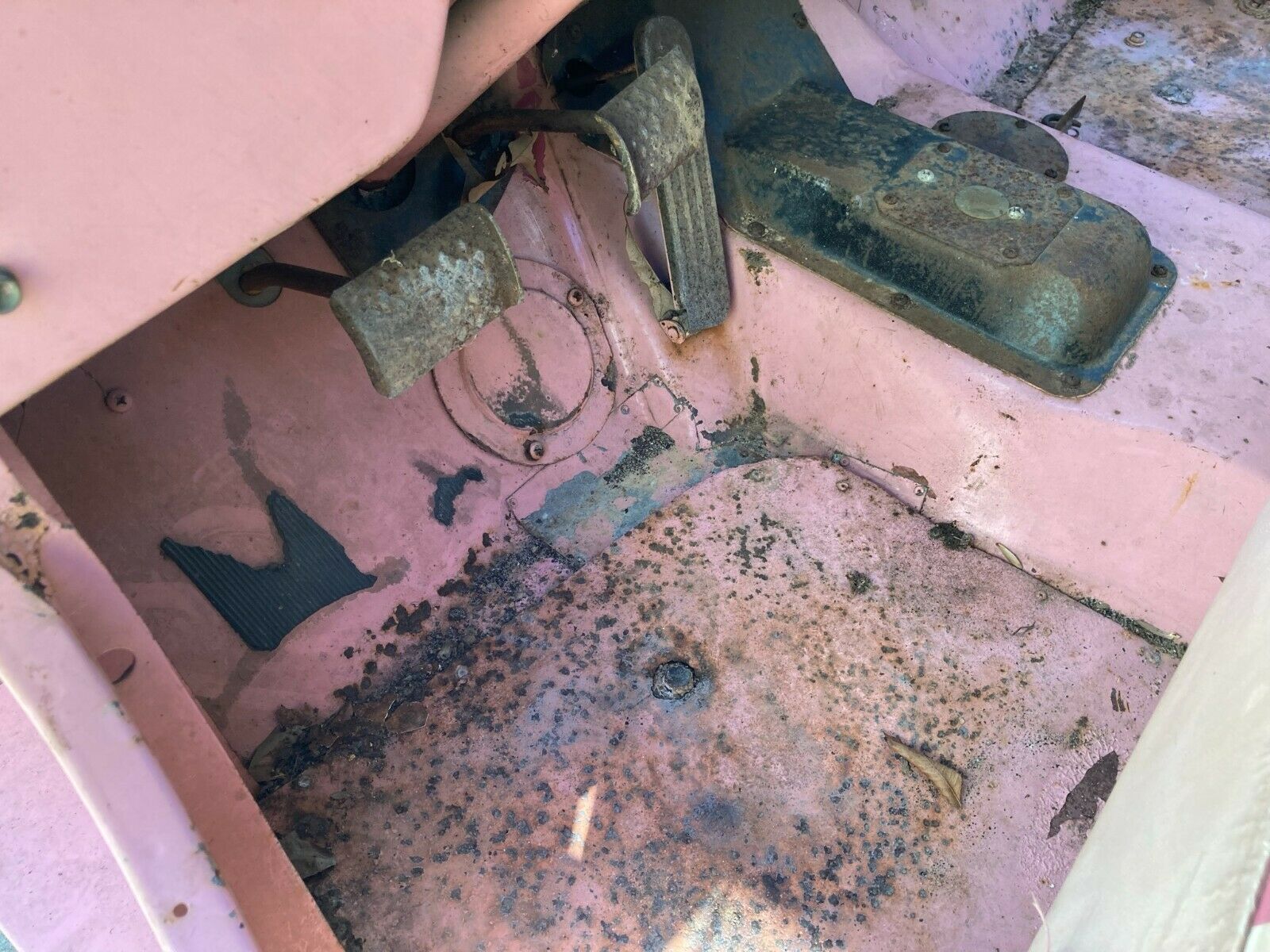 This collector desirable and rare jeep (only 200 Pink Surreys out 1100 Surreys made from 1959 to 1964) is as complete as they get and would serve as a great restoration candidate. Many of the often removed parts are still present and intact as they were originally. Since all the original parts are there a restorer will only need to buy new canvas, tires, and do minimal repair on body/floor pans, and repaint. (Restored these are worth over $50K)