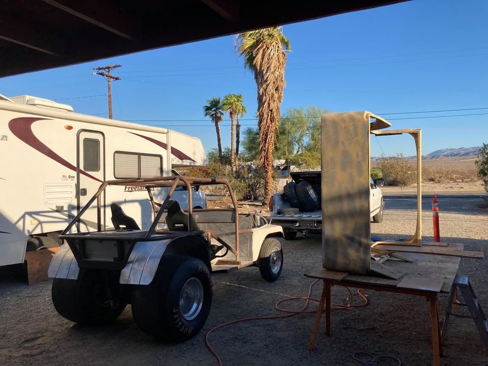 “For Sale : 2 wheel drive Sand Jeep project. Almost complete. 2×3 steel chassis 9 inch shorted to 33” 543 ring & pinion on a spool Moser Axles Coil over w/ ladder bars Mocked up for BBC Powerglide w/ brake – built Drive line 5500 stall converter new flywheel BBC Chevy is apart / new aluminum heads. Dart intake new starter Elec fuel pump Body is all fiberglass except for hood. Howe aluminum 31” radiator Weld Draglite wheels front & rear B&M ratchet shifter Jeep is sheet metaled Aluminum fuel cell Battery tray installed To much to list – car is ready to put together. $26,000 invested. I’ll take $17,000 for the Jeep $19,000w/ the 20’ trailer.”