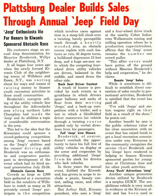 Originally Posted July 24, 2015: This Willys News article from July 1955 highlights an annual customer jeep demonstration in Plattsburg, New York. That’s the biggest teeter-totter that I’ve ever seen. We used to do something similar back in the 70s as part of payday events.