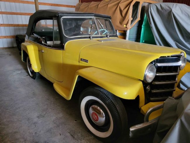 “1950 Willys Jeepster New brakes, carpet and tires..chrome is good…Runs..Top is good..stored inside for 6 years..there is a little rust in both rear fender wells. $10,000 OBO I am selling for my dad I didn’t have correct mileage but can get it”