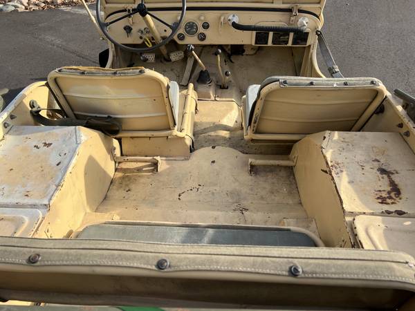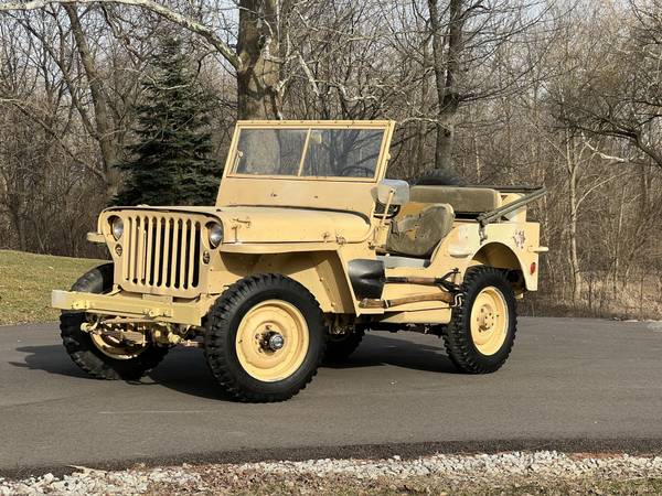 “945 Ford GPW WWII Jeep unrestored in very good shape. Frame and body in good condition. Starts and runs great. This jeep can be driven as is or would be a good restoration project. I just drove it around town and to Home Depot for fun. The jeep spent most of it’s life in California before I had it shipped to Indiana. Recent carburetor rebuild, tune-up, new locking front hubs, radiator flush, oil change and misc. maintenance done. Prior owner swapped out the original 4 cylinder engine with one with more HP. Jeep has a top speed of 55mph vs 40-45mph. Clean Indiana title.”