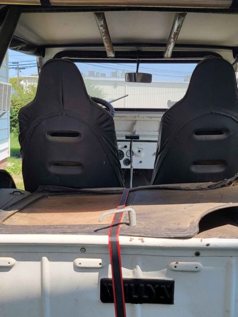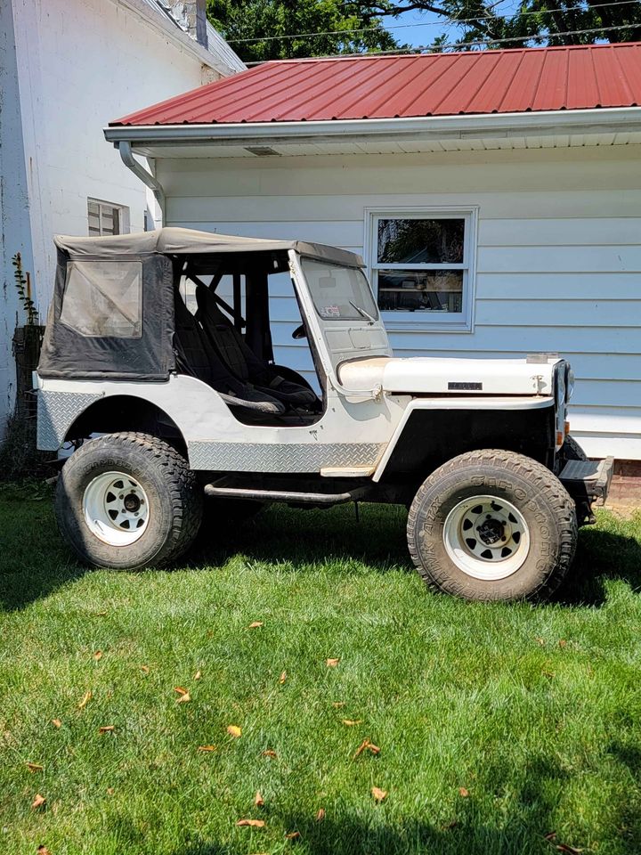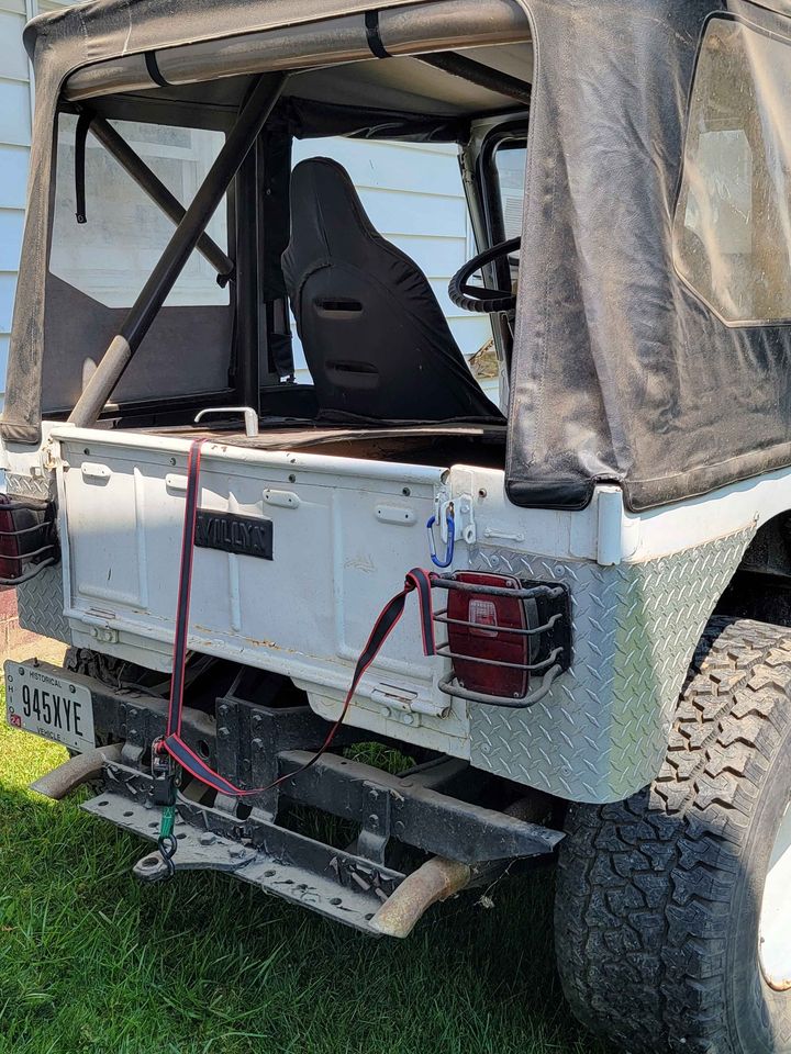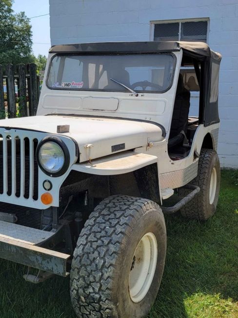 “1952 Jeep Willie’s CJ3A. 351 Cleveland automatic transmission. Somebody put a hydraulic steering in It. Break need cleaned up from setting.”