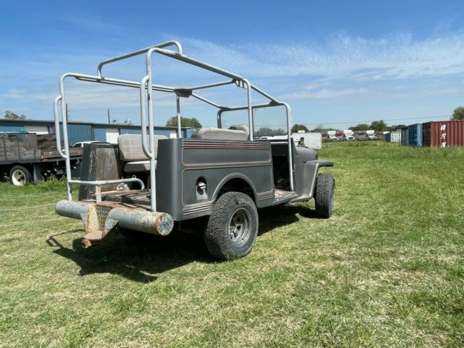 “We believe this is a 1964 Jeep Willys Traveller based on the interior and exterior trim. It has been modified as shown.