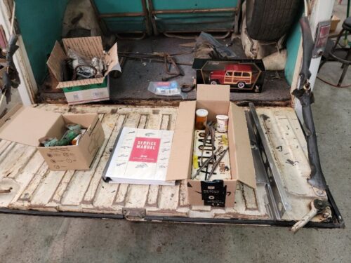 “The wagon runs great. Brakes work fine, also. This wagon is very complete and original, but it needs some attention everywhere. The drivers window is broken. There are rust issues with the floorboards and rocker panel supports. I have started replacing some of the support brackets but needs more work.