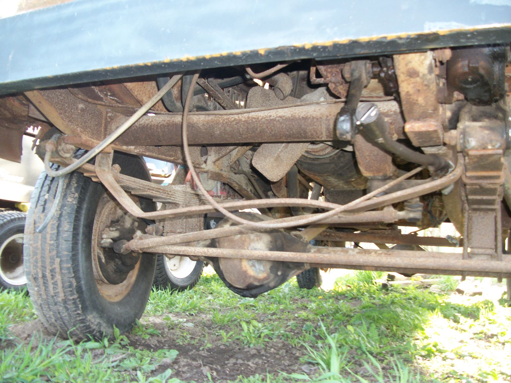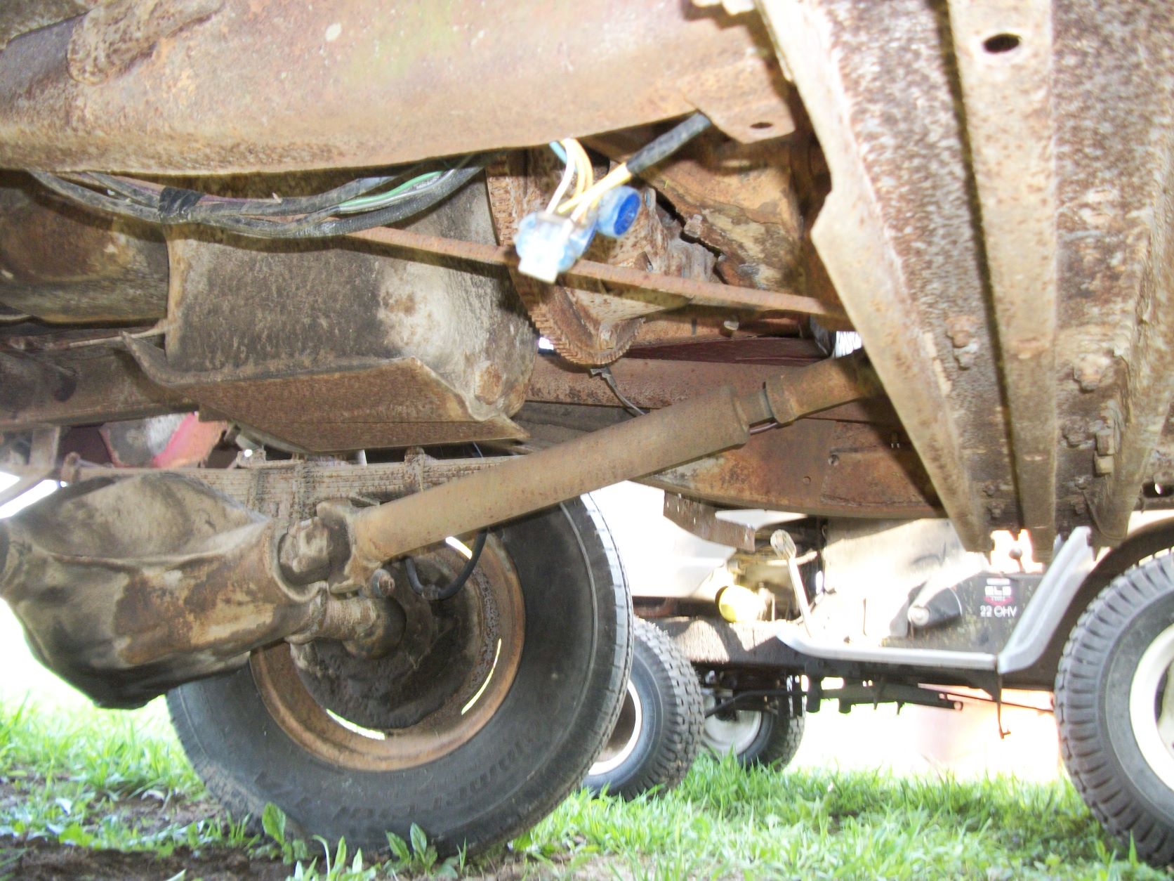 In poking around the truck some, I have determined that it wore red and white paint at one point in time. Otherwise, it seems that a youngster got ahold of this truck, did an extremely poor job of installing a 4-inch lift kit, and promptly took this truck off-roading where they ran it up onto something. Whoever this was did an equally poor job of trying to replace the radiator and an even worse job of fixing the broken steering.