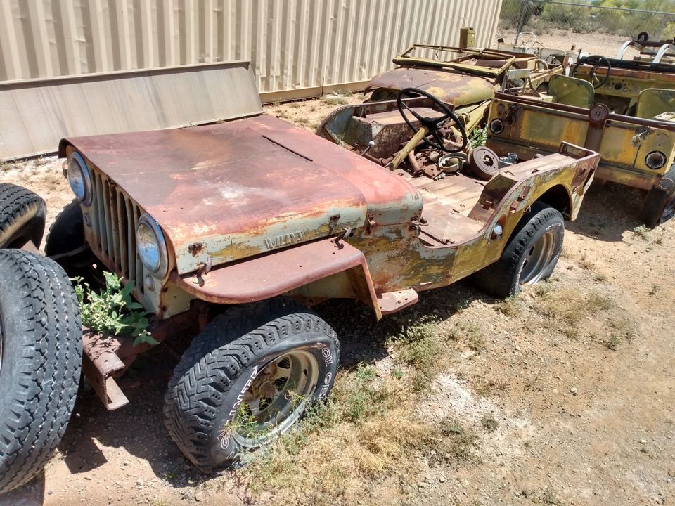 “”Selling for my dad, he’s looking to sell all 5 as one package. They range from year, model, and condition. I don’t know exact details on them but here’s what info I have to the best of my knowledge. 1941-42 ranch special, complete 1948-49 CJ2A, complete 1953 M38A1, complete Might mite, missing transmission and left front hub assembly 1953 M38A1, missing motor, has a lot of parts inside, maybe missing other items.””