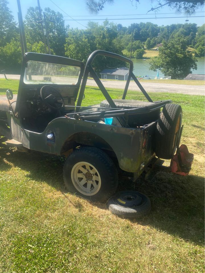 “Hello I have a 1957 jeep willys it has a very solid frame the body has seen a night in prison it’s got a couple holes in the floor which you can see in the picture steering is not connected the motor ran when put away 7 years ago I have the soft top and seats and doors for it which they all are in very good condition. I am open to trade to what ever catches my eye but cash is king. BRING A TRAILER DONT MOVE !!”