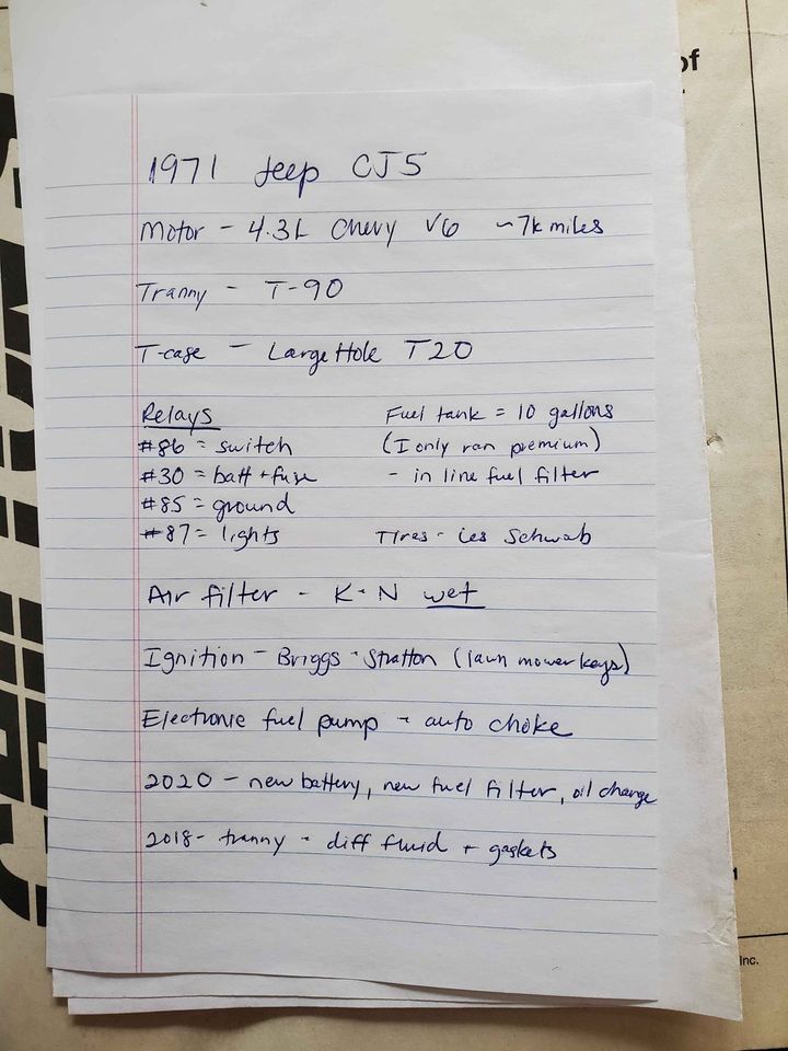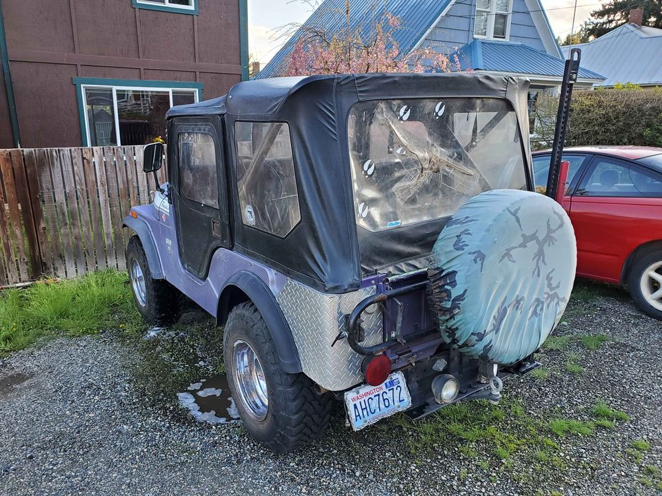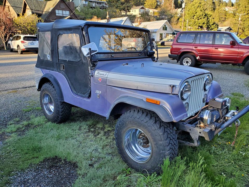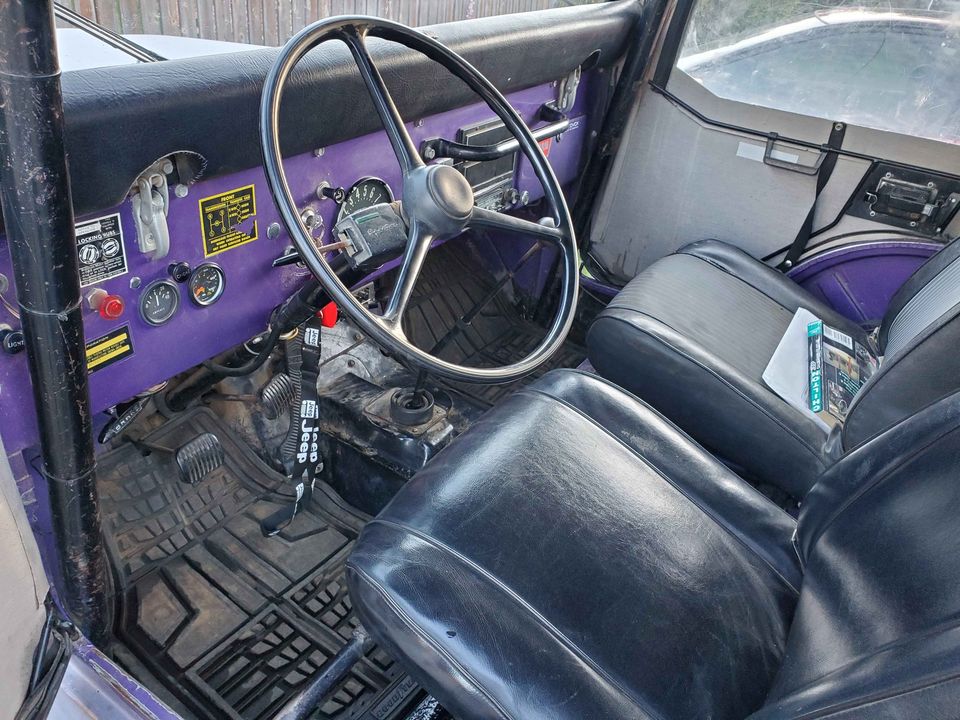 “1971 cj5 renegade Spec sheet pictured from previous owner Has a new 4.3l Chevy v6 with approximately 8k miles on it. 69k on odometer thus on body Body in great shape! Nice patina on faded factory purple paint. Newer toyo tires Warn winch Collector plates Comes with optional bikini top and suicide doors. Cash only please.”