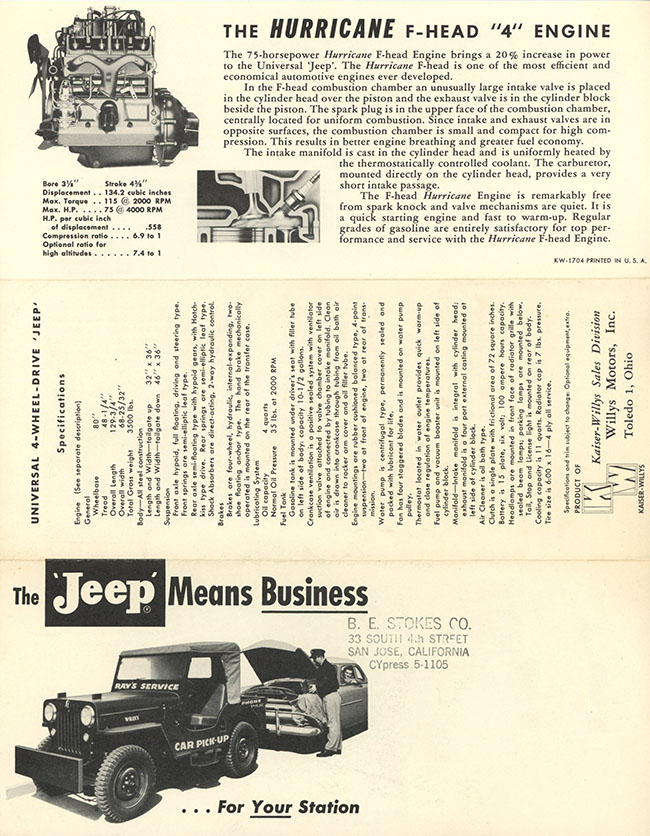 This The ‘Jeep’ Means Business . . . For Your Station mailer is marked form KW-1704. This is a near copy of the “Facts” mailer listed at top: