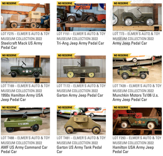 Ed shared the news that there will be some pedal jeeps auctioned by Mecum this September. They are a part of the ELMER’S AUTO & TOY MUSEUM COLLECTION 2022 auction September 14-17 in Fountain City, Wisconsin. I’ve never been, but the pics make it looks like an interesting place. Unfortunately, 2022 is the last year for the museum. Learn more about the museum here.