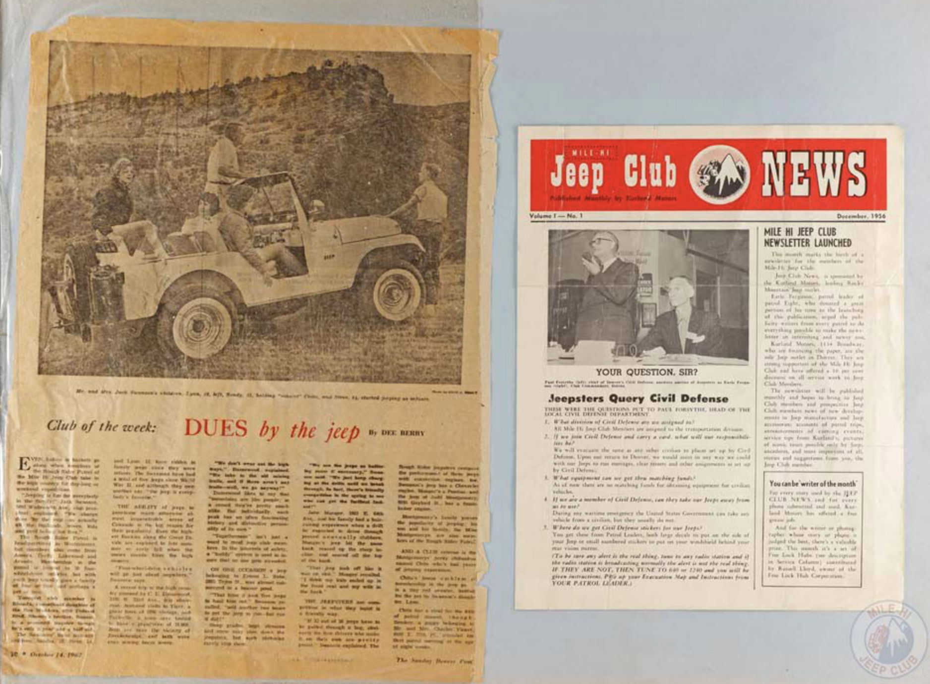 Here is one example of what is posted there. This photo shows the inaugural issue of the Mile HI Club’s Jeep Club News in December 1956.