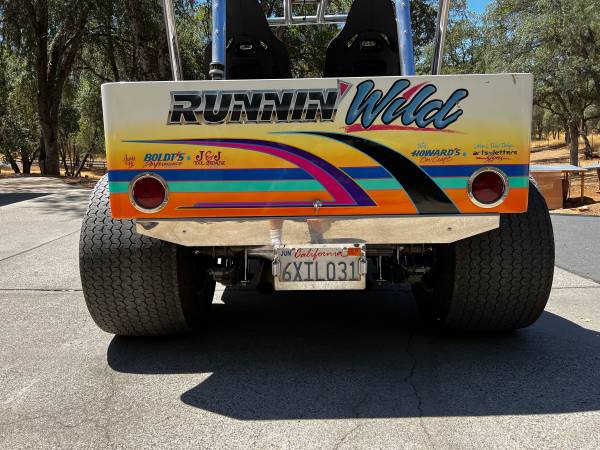 No way that is street legal. Missing mirrors, licence plate light, turn signals,wind shield and wipers fenders,DOT headlights. That is just from pictures. Need more than a licence plate to drive on the road in California.