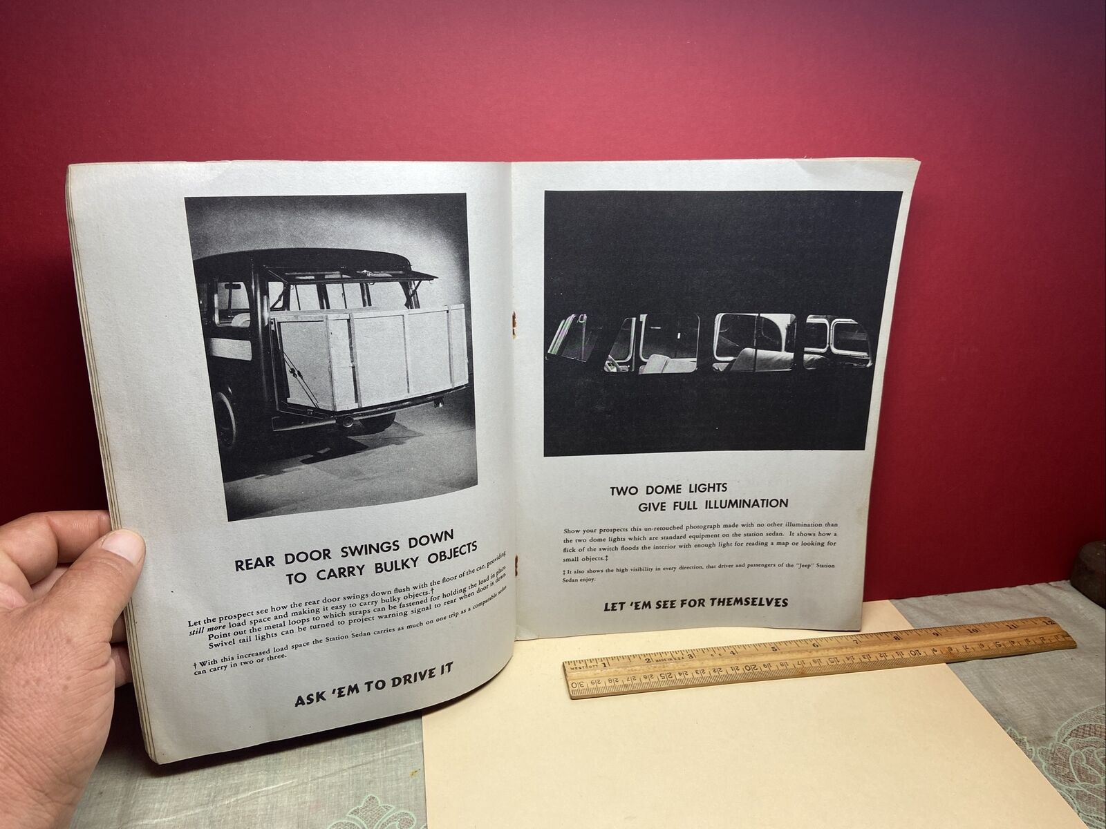 I missed out on this 16 page very rare Jeep Station Sedan Demonstration Manual on eBay. I wonder if they produced similar documents for other models. Thankfully, the seller posted photos of each page.