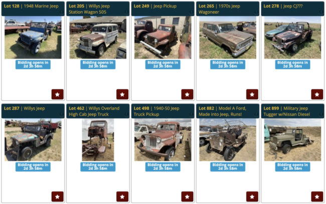 UPDATE: A reader noted that the auction site had updated it’s photos with some jeep photos. Here are some of the jeeps that will be auctioned: