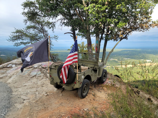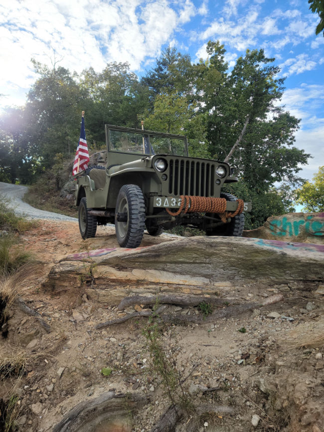 To honor his father, Roger drove up Mt. Currahee in a 1942 GPW loaned to Roger by his friend Paul Grice. The mountain road is 2.5 miles and climbs 850 feet. Roger was accompanied on the trip by two daughters, two nieces, and a few other family members. They all enjoyed the beautiful views!