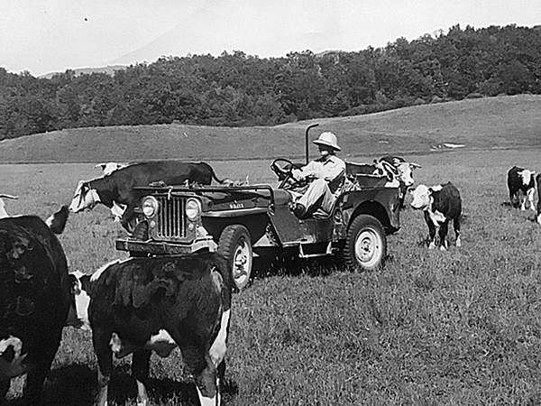 Barney, I think your first idea might be correct, especially if the jeep was used to feed the cattle and they followed behind it.