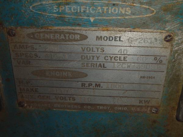 “For sale one Hobart 4 CYL Jeep Willys CJ2 gas powered welder.