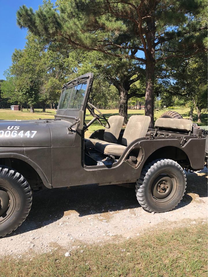 “Military Willy Jeep for sale. Serial number 61840 date of manufacture is 10/1953. Original Willys overland 4 cylinder 24 volt gasoline engine. 2 new batteries, 3 speed standard transmission with low and high range also 2 and 4 wheel drive. This Jeep is in good condition for its age. Almost new tires. Used for pleasure rides and parades.”