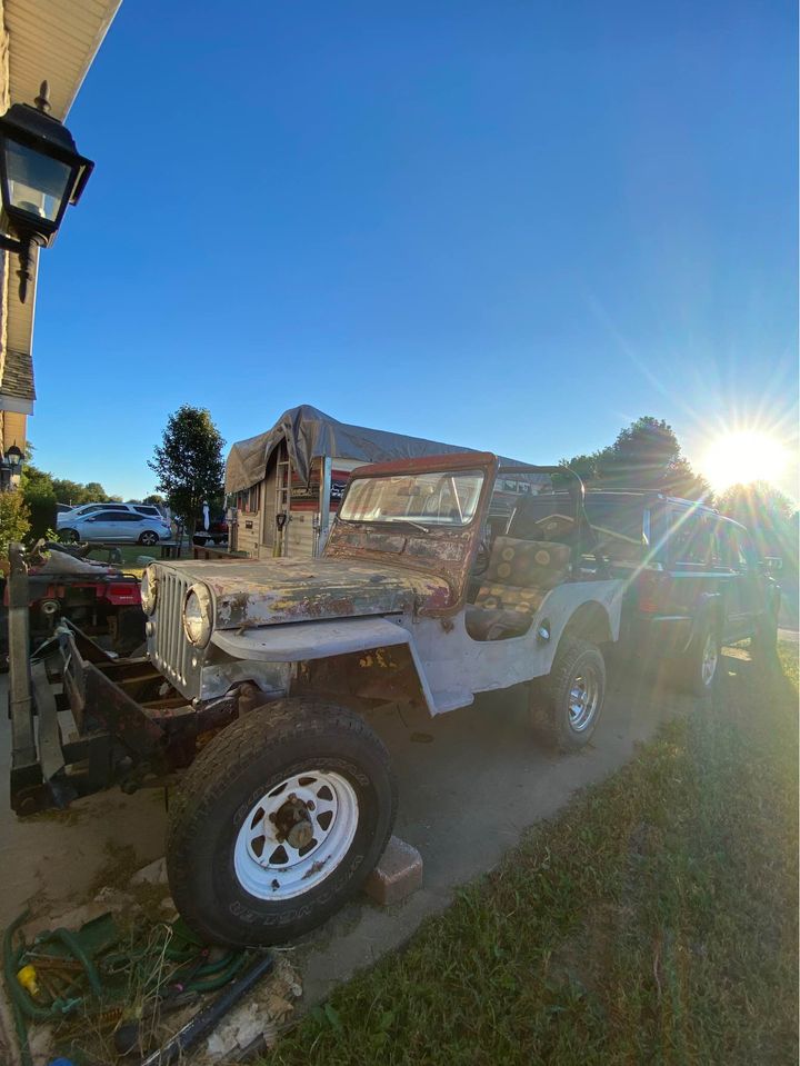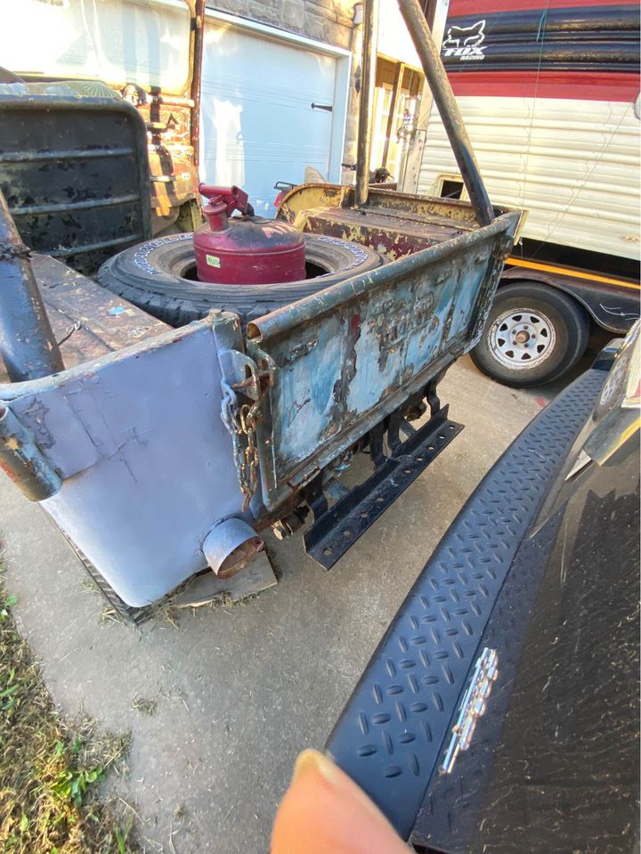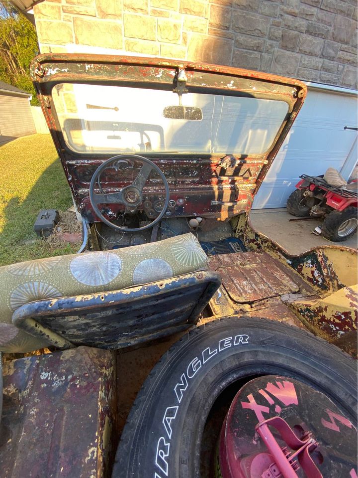 “Willys Jeep for sale or trade. Selling my projects and this cool Jeep is one V6 motor and 3 speed Has lots of rust on body but frame looks great Was told starter is not working but have not had any time to work on it Would make great hunting rig or Completely restore it I don’t know much about the Jeep”