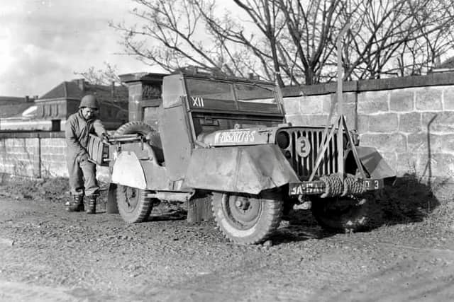 Not sure about this one given the labeled year, but post war MP jeeps in occupied Germany were armored up similar to this because of snipers and such. While the war had ended, there was still unrest and rebellion in occupied Germany, especially the cities.