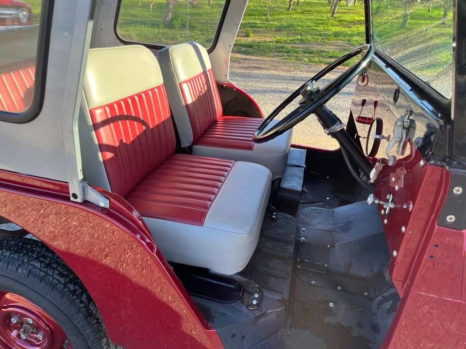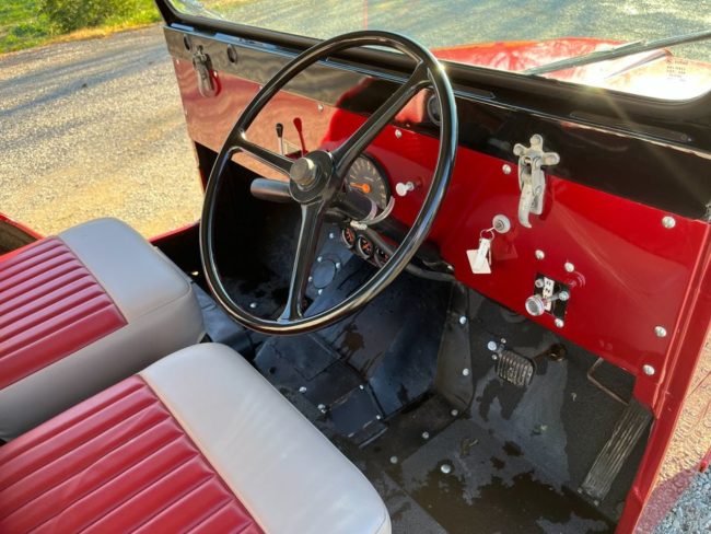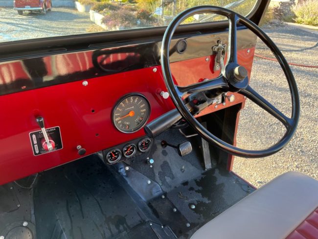A modified CJ5 body, and not a DJ5 grill, and 4 lug rims make me think this is a “modified” from multiple “donors” project, albeit finished well. Good for delivery service.