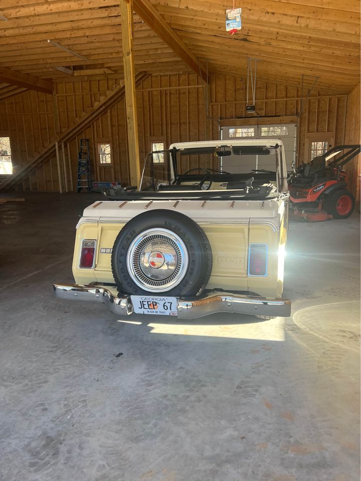 “1967 Jeepster Commando convertible with power retractable top with original ge motor working it today… this jeep is all original with EVERYTHING WORKING including the original radio cigarette lighter and interior lighting the original engine ( v 6 )runs great and smooth with 92k. Automatic transmission. All trim is intact also have the pump for power steering and brakes that could be installed asking $15”