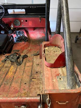 This appears to have a DJ-3A body, though a filler has been added to the driver’s side. It does not appear to have a DJ-3A frame (it’s missing the parking brake cable mounts on the underside of the frame).