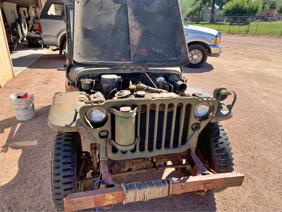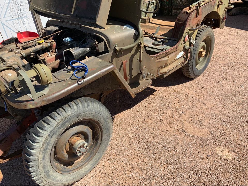 “RARE AND DESIRABLE U S ARMY FORD GPW JEEP VERY COMPLETE AND ORIGINAL . NEEDING RESTORATION AND IS VERY SOLID . ENGINE IS FREE . ORIGINAL FORD DRIVE TRAIN. COMBAT WHEELS. Seller’s Notes Will be happy to provide additional photos and details. Jeep is not running and has been in storage.”