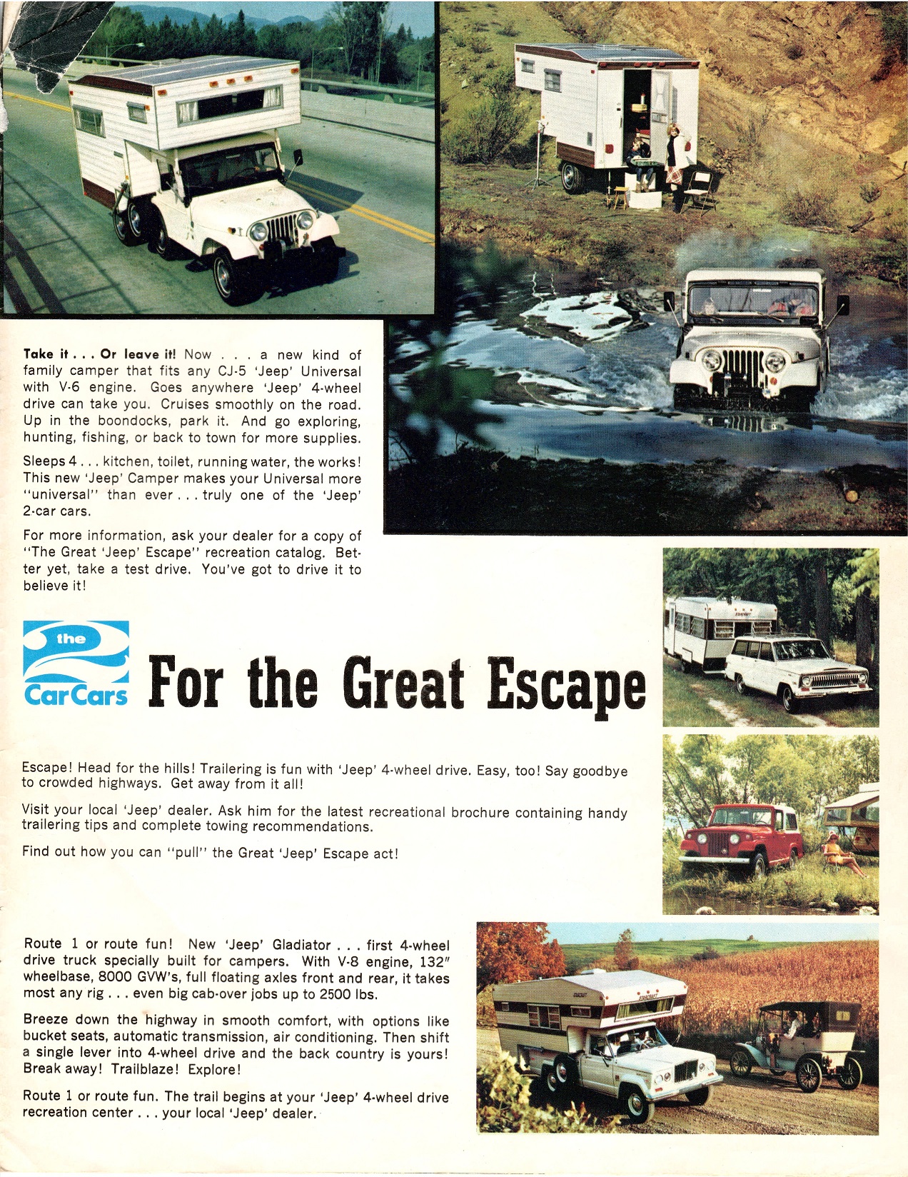 1) The red CJ-5 shown with a couple “racing” it is a rare 462 model, perhaps it’s only appearance in a jeep-family-brochure;