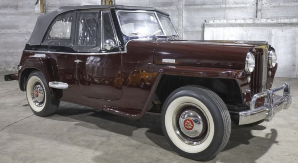 “1949 Willy’s Overland Jeepster This 1949 Willy’s Overland Jeepster went through a recent ground-up restoration by the world famous Jeepster Jim! This Jeepster is powered by a 4 cylinder L-134 Willy’s engine with a 3 speed transmission with overdrive. Also included is the convertible top and side curtains. This Jeepster is ready to drive anywhere! Sells with clear title. *Reduced online buyer’s premium of 15%* ”