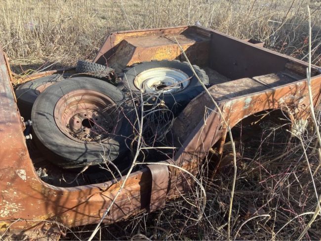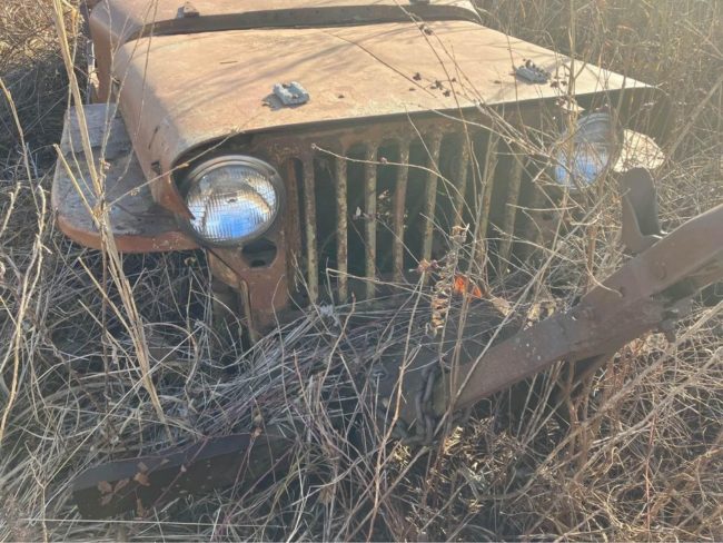 “1942 Ford Jeep with tags. Nothing under the hood. Has axel assemblies & suspension. No title but bill of sale. We can load on flat bed with sky track. Pick up near Chandler Oklahoma.”