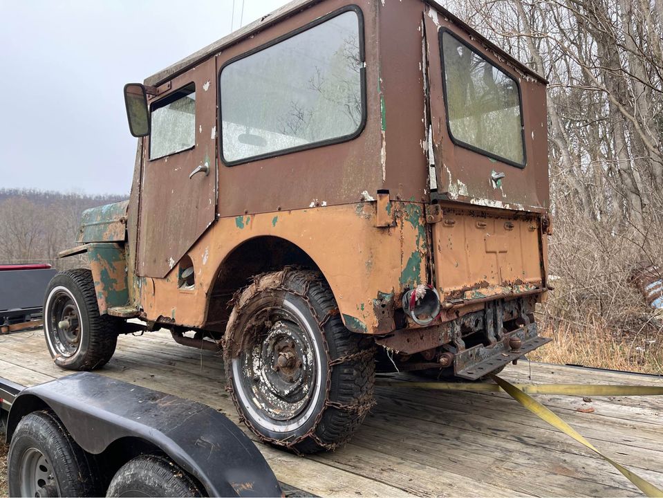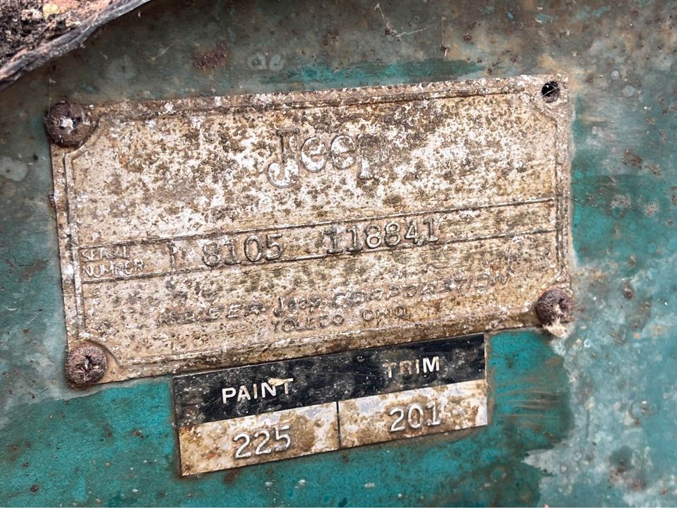 “This right here is a 1964 Jeep CJ-3B (4WD). The vehicle is a barn find. It has 43k original miles. It has a Buick V6 motor in it which is original to the vehicle. The original color on this Jeep is Spruce Green Tip. The top is in good condition. Floorboards are in good condition. Frame is in great shape. This is a great project vehicle—it has a RUSTY Exterior. **NO TITLE**. I don’t negotiate over the phone.”