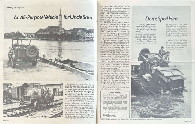There are plenty of interesting, unusual, historic and surprising stories related to Jeeps and their owners. In addition, some of these features have nothing to do with jeeps. This link will display all featured stories starting from the latest.