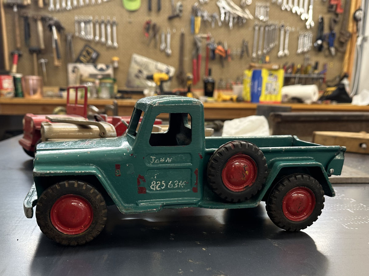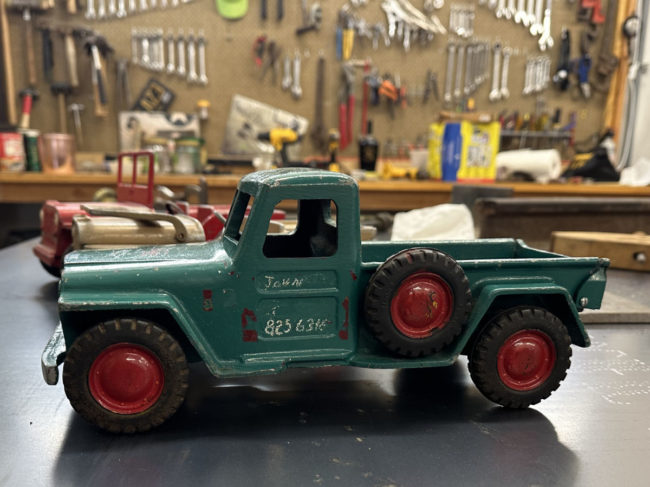 Did some searching back in my archives and found a photo of Glenn Byron’s Hershey table from a few years back and one of the photos shows a green Al-Toy pickup, and there have been a few that have showed up in the green color, so I believe the green color is original to this truck.