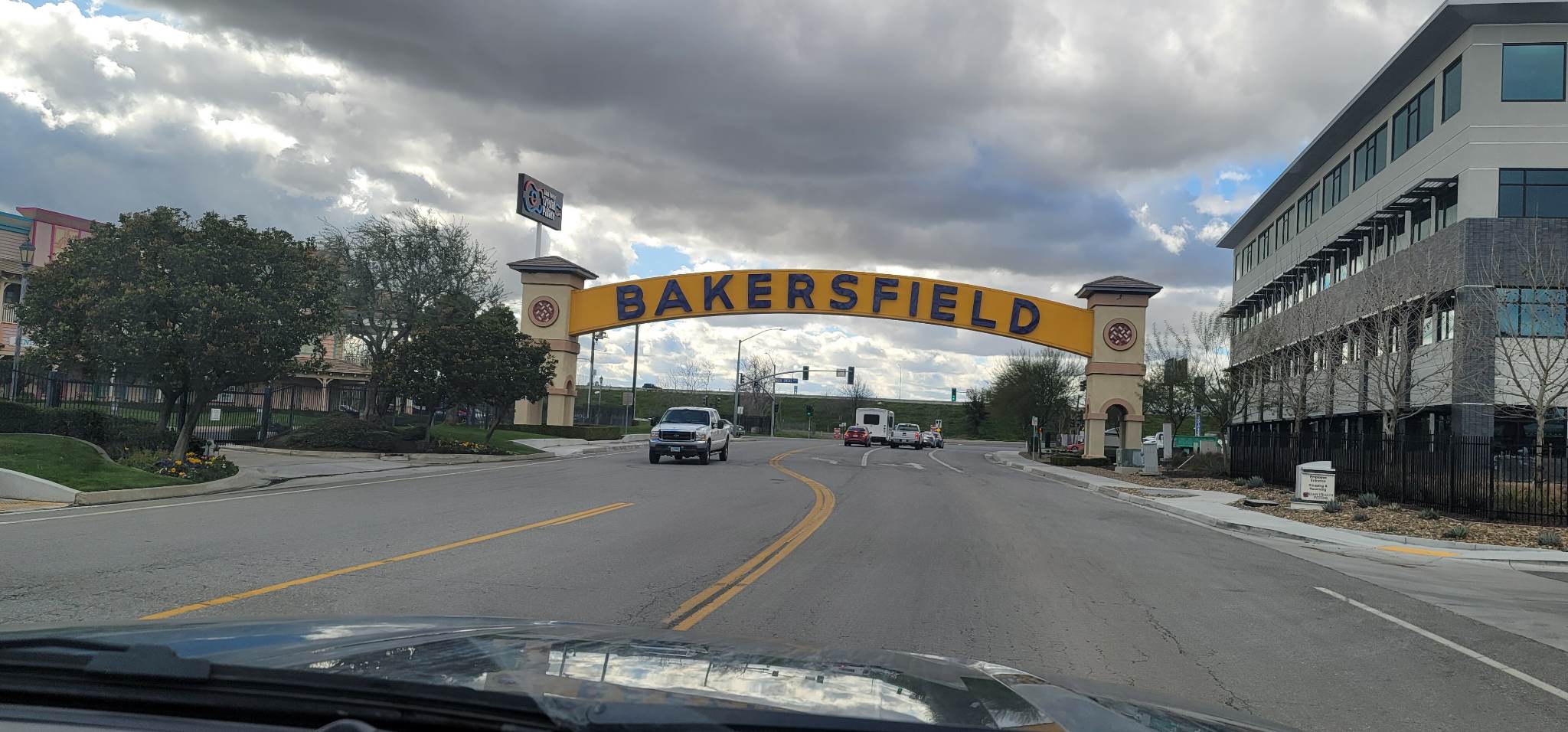 At least we got a photo of the Bakersfield City arch, but sadly there was no place to park where we could take a selfie: