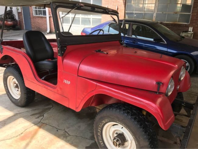 Tom spotted this solid looking CJ-5. I can’t tell if those side plates are there to protect or to cover damage or rot.