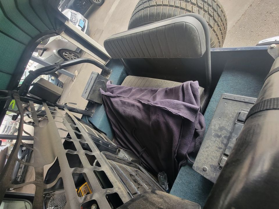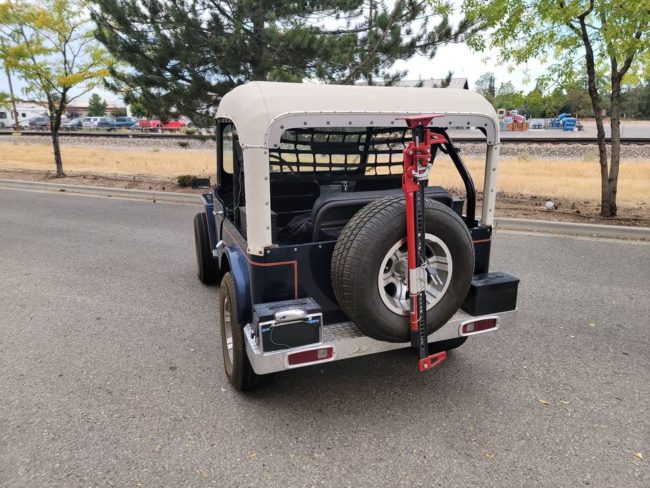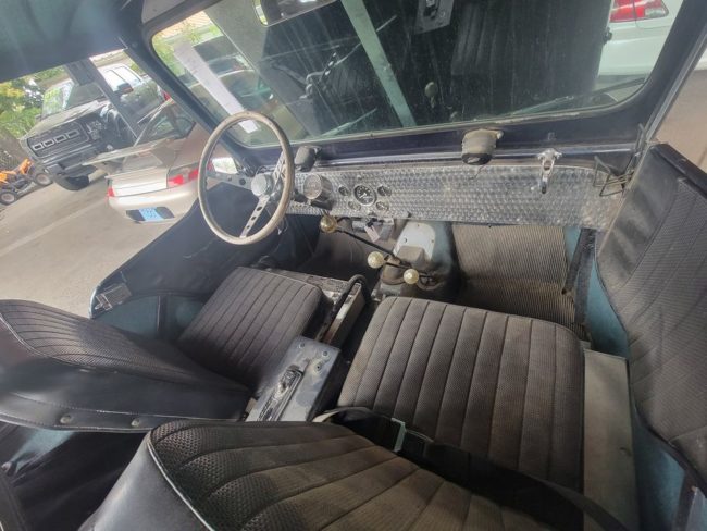 (10/11/2022) This jeep came out of the Fresno, California, area and has been for sale previously. It’s got a Muller top, expanded windshield, and doors similar to some other California-jeeps from that region. One thing I hadn’t noticed was that the generator has a power steering pump mounted behind it. Is that out of some vehicle? It seems like a handy setup.