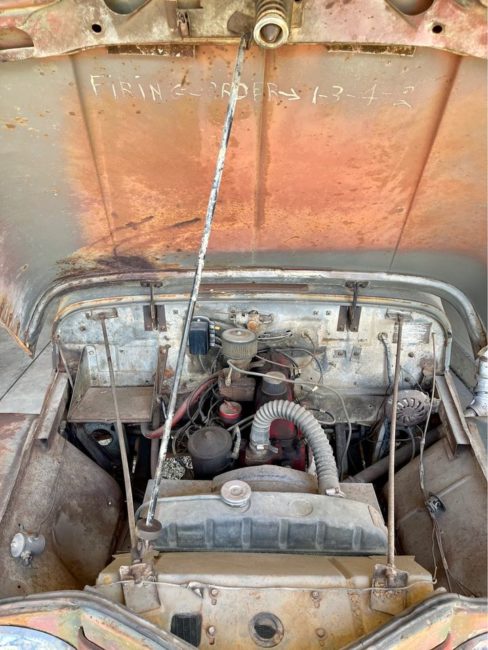 “Original Willys – Liquid Gold NON RUNNING – REQUIRES TLC 4cyl 4wd New tires New fuel cell New battery Newer red wheels Newer rebuilt starter”