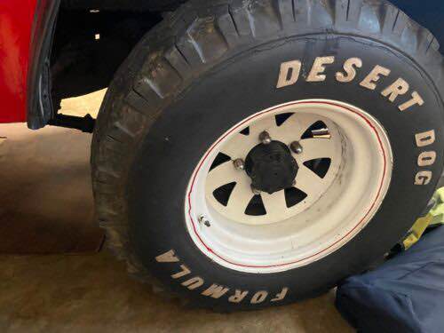 This has some early style Desert Dogs that appear recapped with Armstrong Tru Trac (?) treads. Heresy!