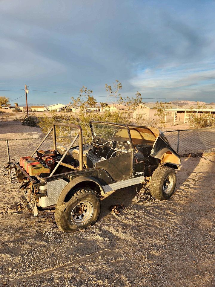 “Has original AMC motor. Needs to be towed. Doesn’t run. Will discuss trades and offers. Project jeep for sure.”