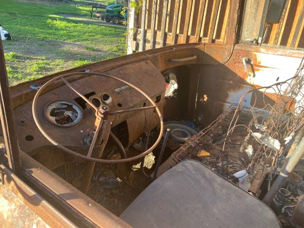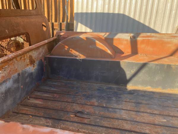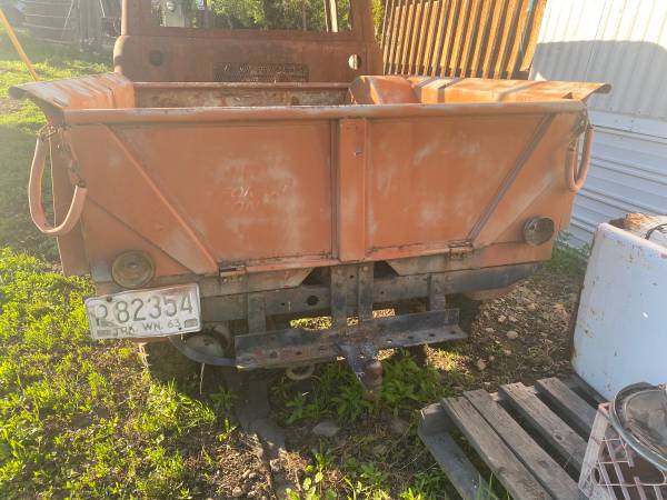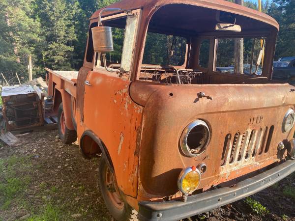 “Early 50’s forward control Jeep, shortest wheel base, near perfect box, ran until priming gas fire in jar burned the cab inside. Complete rig, no title, I have never seen a box this straight and rust free,,, $1,500 O.B.O,, partial trades considered”