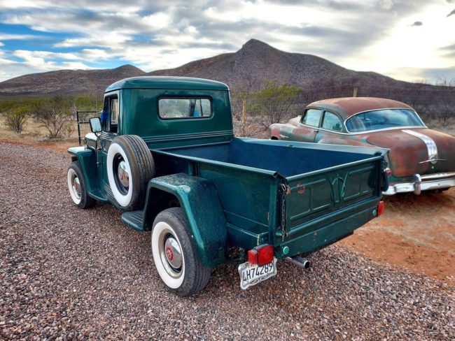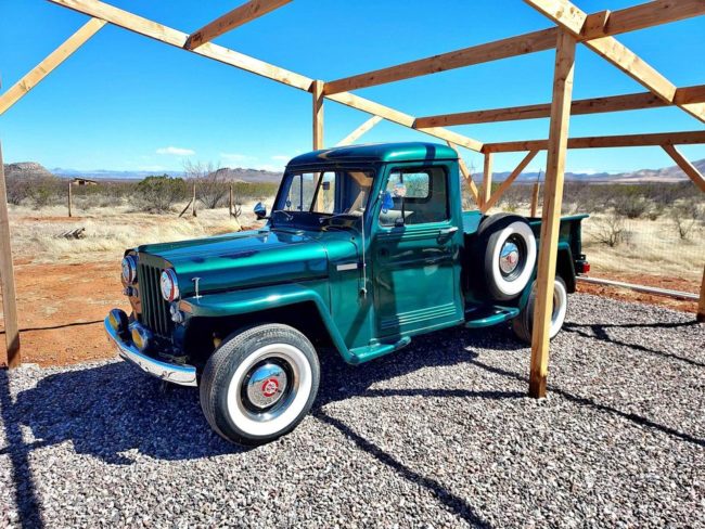 “Very nice willys pickup 2wd 4cyl 3spd on the floor. Starts right up and drives but needs master brake cylinder, looks pretty good older restoration but needs paint because of cracking paint. Tires look new still. Clear title $15000. Now first 12500 takes it. Only selling due to health problems.”