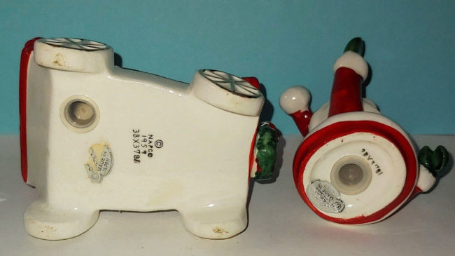 “Vintage 1959 NAPCO SANTA CLAUS JEEP Salt & Pepper Shakers Set Japan In BOX RARE . Both Shakers Are In Very Good Condition, They May Have Been Displayed For A Short Time, But Have Not Been Filled For Use. National Potteries Co.”