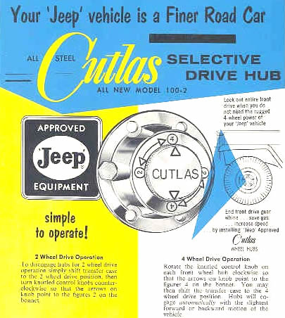 After publishing this, Paul Ferrari sent an ad from the 1976 issue of Four Wheeler magazine. It shows that Cutlas was advertising both the selective hub and their new automatic hub.