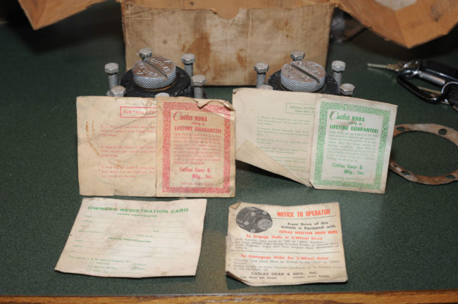 David……good stuff as usual. The original 1953 CJ3B that I purchased from a ranch in Wyoming in 2014 has an original set of Cutlas front hubs like the first ones in the pictures with the two slotted engagement pins. Just out of curiosity, I pulled them off and looked at the inner workings. They looked fairly simple and sturdy. They were still well greased, so I re-installed them and tried engaging and disengaging them. I do not have the tool shown in the picture, so I found an old stubby wide bladed heavy screwdriver with a big wooden handle (very period correct for 1953 !!) and it fits the slot perfectly. Again, they seem easy to engage with the screwdriver setup I have.