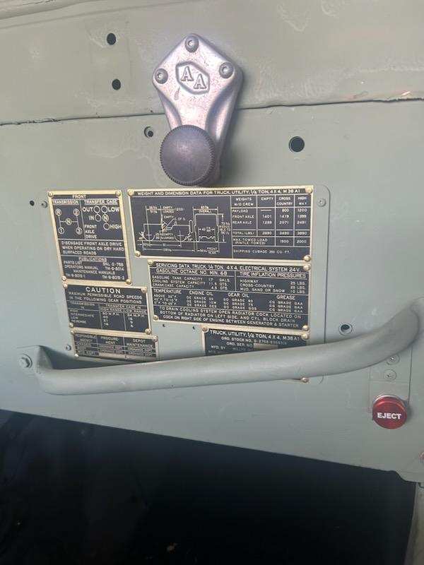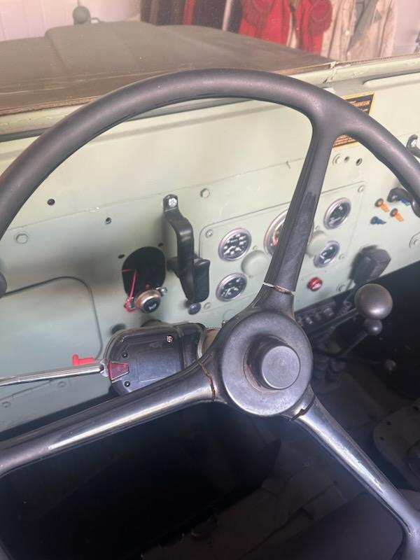 (05/19/2023) Justin, proprietor of Humble History Antiques, has this 24V M-38A1 for sale. Justin didn’t have much history on it, as it was his grandfather’s jeep. While the body is M-38A1, on the rear of the frame is a PTO bar, suggestion the chassis may be a CJ-5.