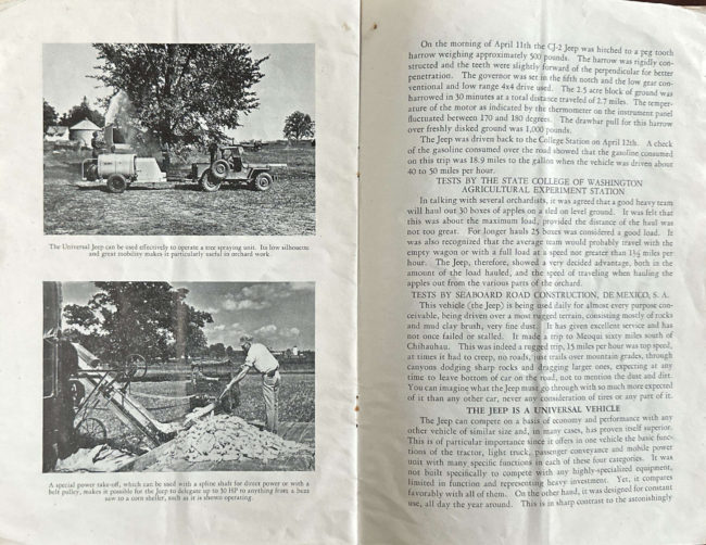 This undated, 32-page introduction to the Universal ‘Jeep’ is a 8.5″ x 11″ booklet I didn’t have and can’t remember seeing previously. I managed to buy it off ebay for $7. Now, that’s a score!