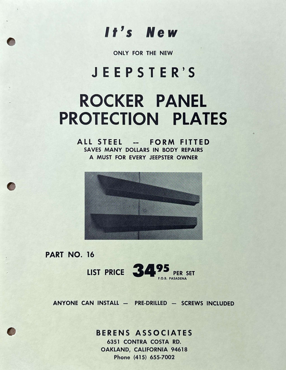 The following roll bars, tow bar, rocker panels, and wide rims were either made by Berens or for Berens for resale.