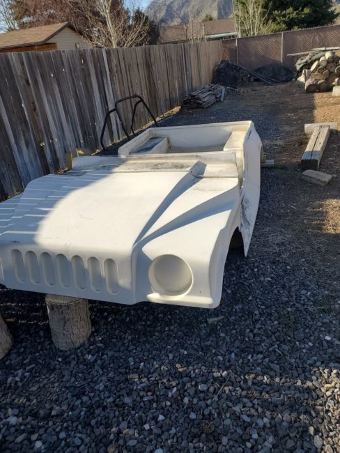 “”HJ-7 / Hum-J” Fiberglass body kit for a Jeep CJ, YJ, TJ. Never installed, but has sat outside for years. Cash in person only”
