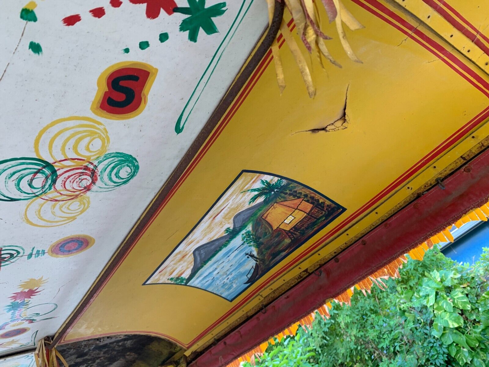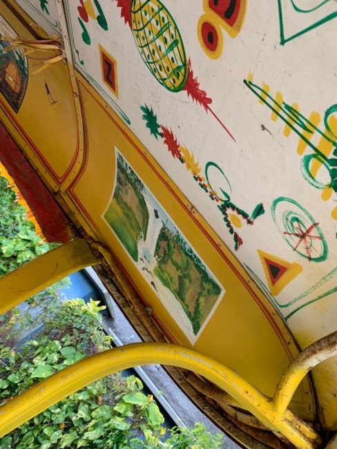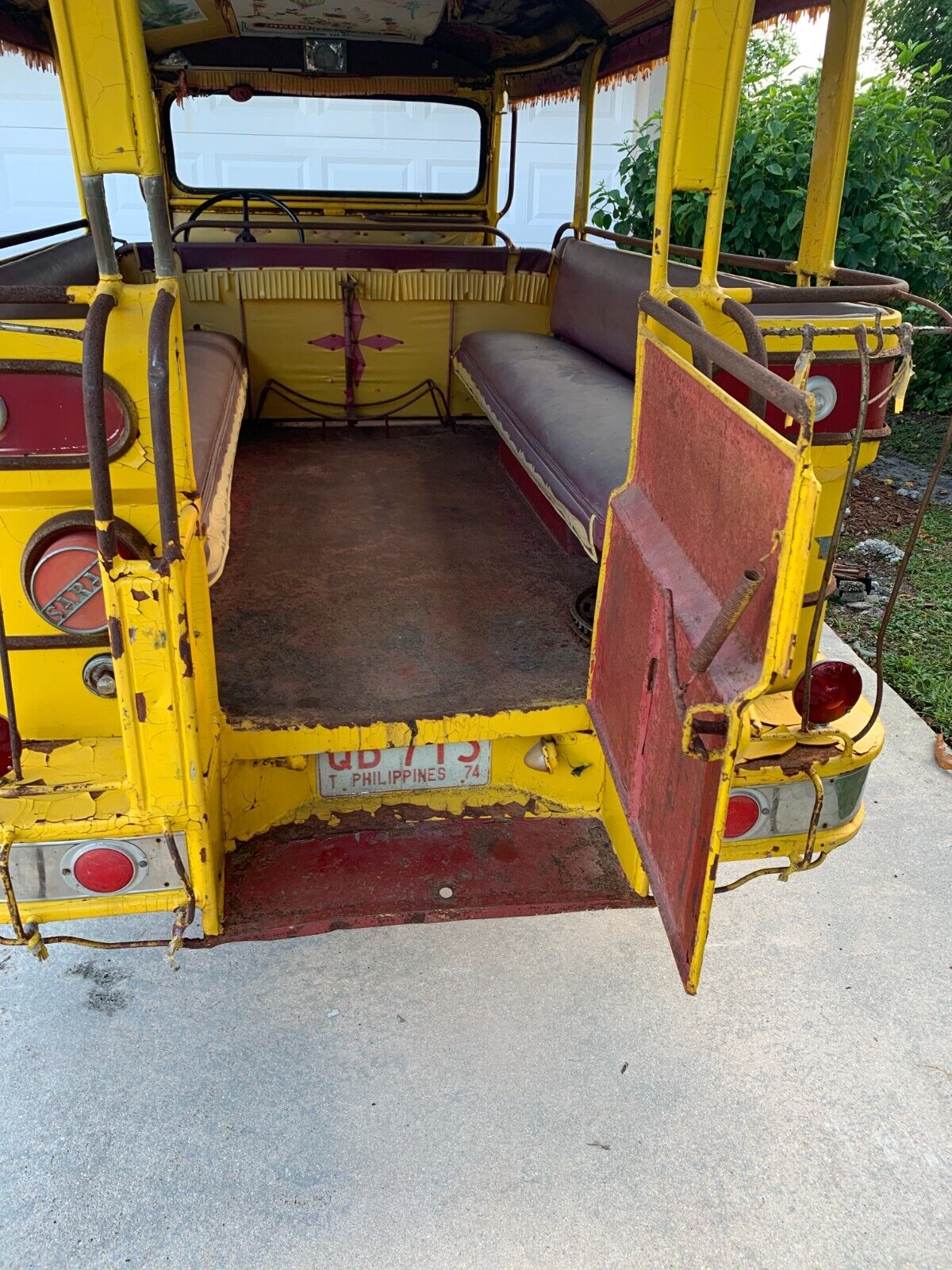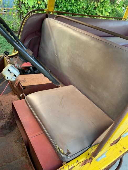 The engine number near the water pump is 3J133392. I don’t see a VIN number of the Jeep. If someone knows where it’s hiding on a Jeepney, let me know. This car has been sitting a long time. The engine does run. You pour a little gas in the carb and she starts up. It doesn’t seem to have any funny noises or puff oil, but the carb definitely needs refreshing as it sputters and dies sometimes. The steering box needs rebuilding. It does not steer with the steering wheel. I think the gears are stripped in the steering box and it leaks fluid. The brakes are down of course from sitting. The exhaust needs work(manifold is nice). The details on this Jeepney are so cool. The more you look, the more you see. Sarao emblems all over. All hand painted artistry including the ceiling panels. They really blinged them out. Very rare in America….”